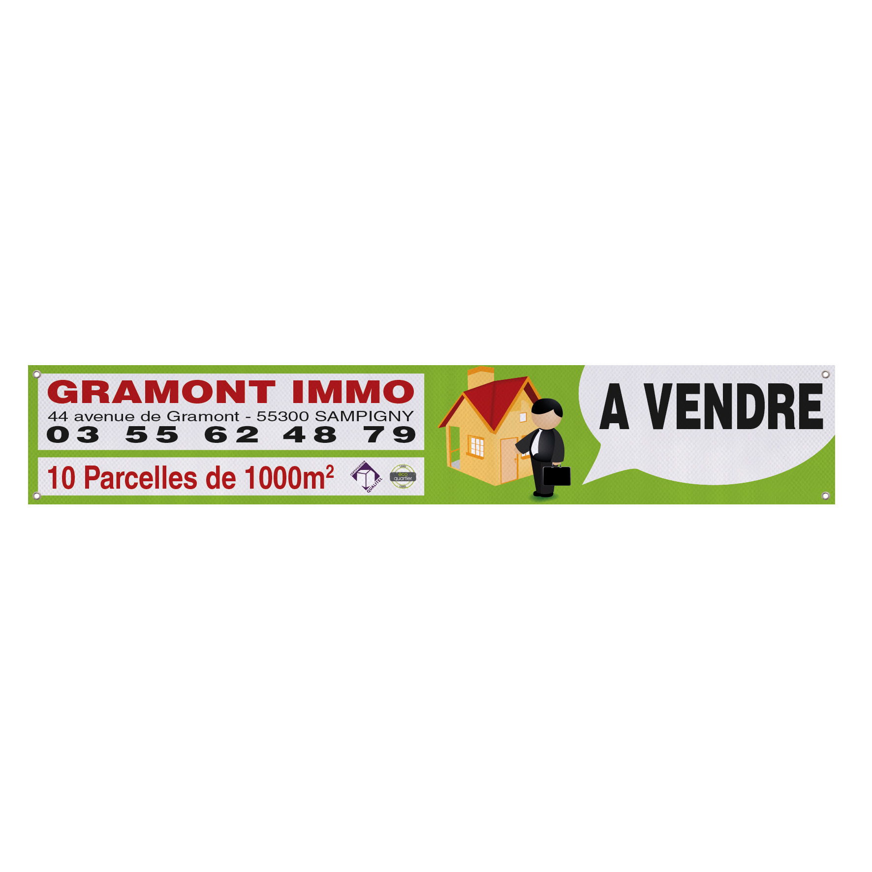 Fabriquée en PVC blanc 500 g/m², elle allie résistance et durabilité pour une communication visuelle efficace.