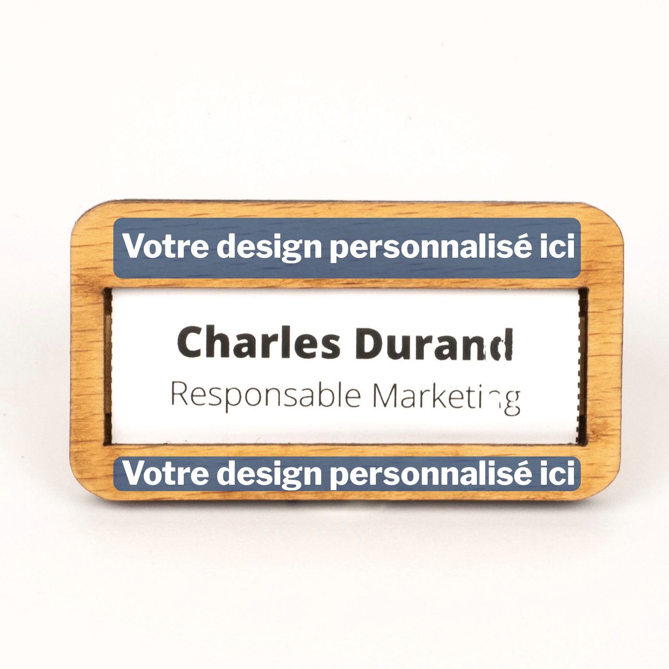 Badge nominatif en bois de hêtre massif certifié – NOMINABADGE