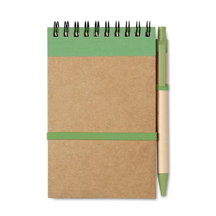 Bloc-notes A6 + stylo en carton recyclé – Spirale – SONORA
