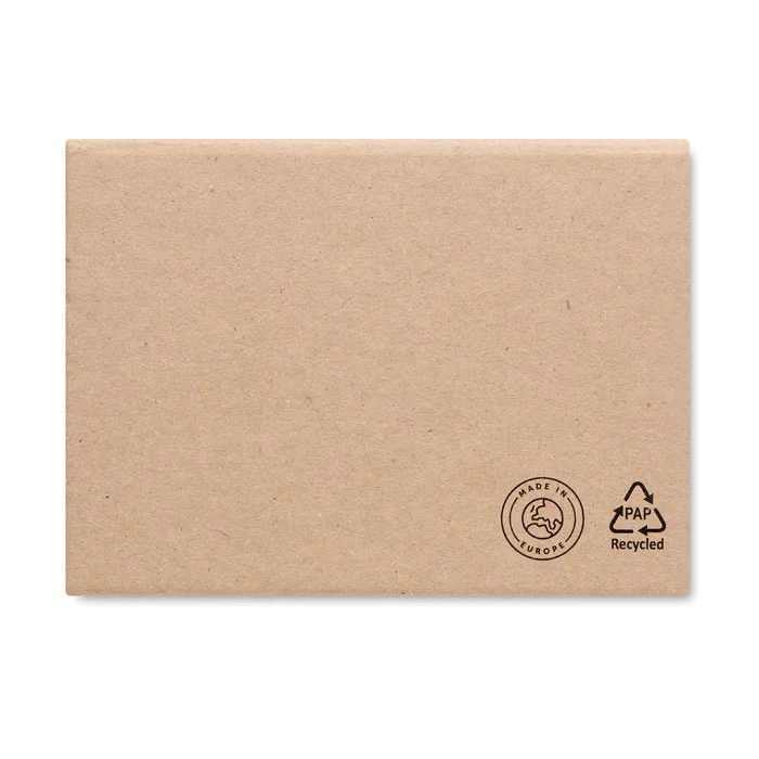 Ce bloc-notes adhésif 3 pièces de bureau personnalisable fabriqué en Europe possède une couverture souple en papier recyclé.