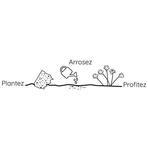 La couverture est un papier de 200 grammes contenant des graines de fleurs en mélange, garanties de dernière récolte et de germination : coquelicot, bleuets, lin et cosmos. Les graines se conservent 2 ans.