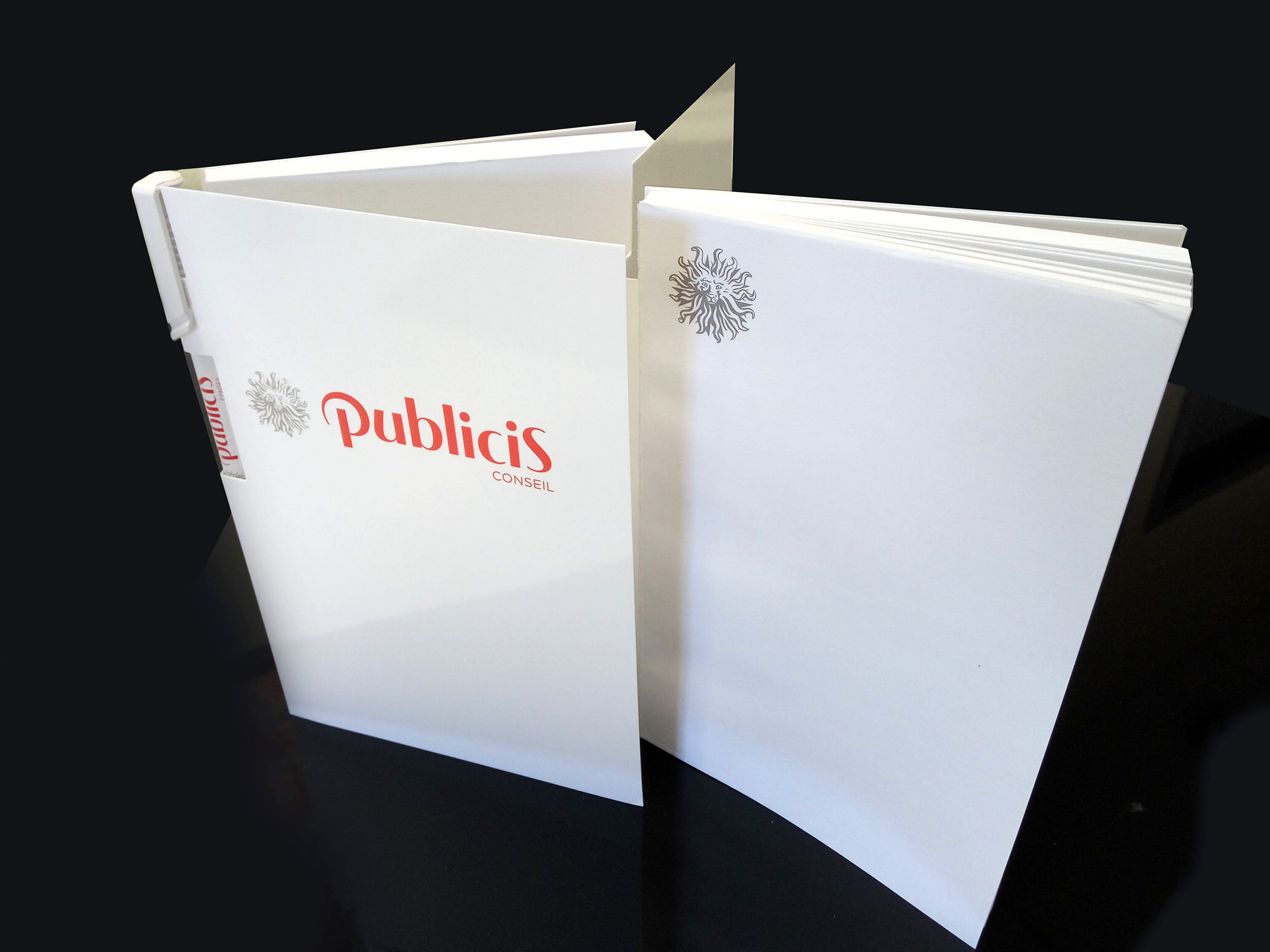 Sa couverture rigide est conçue en carton 380 g, tandis que les pages intérieures sont en papier offset blanc 80 g, personnalisables en une couleur sur le recto (en option).