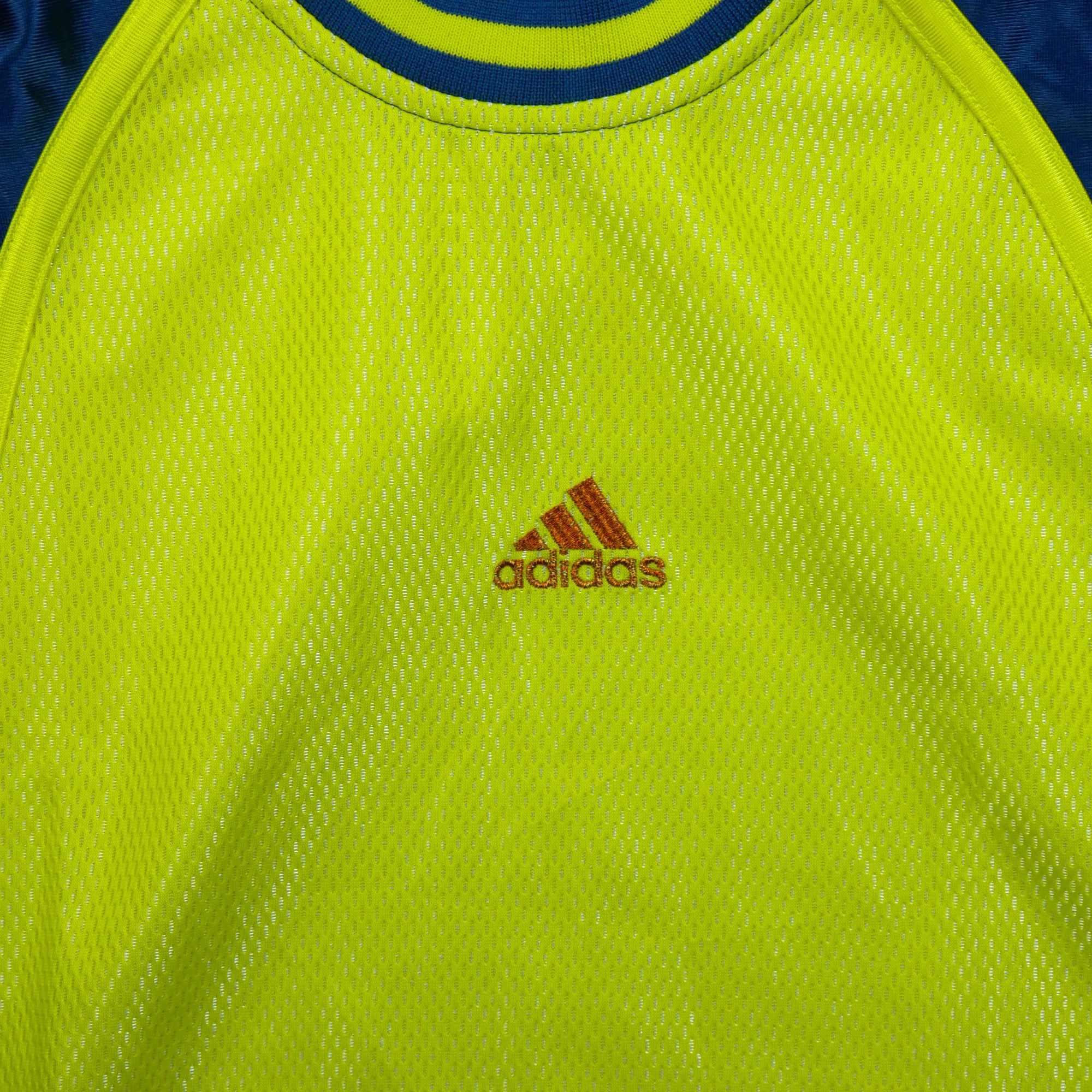Ce maillot Adidas jaune fluo pour le basketball allie style et durabilité, avec un design dynamique et des matériaux de qualité qui résistent à l’usure.