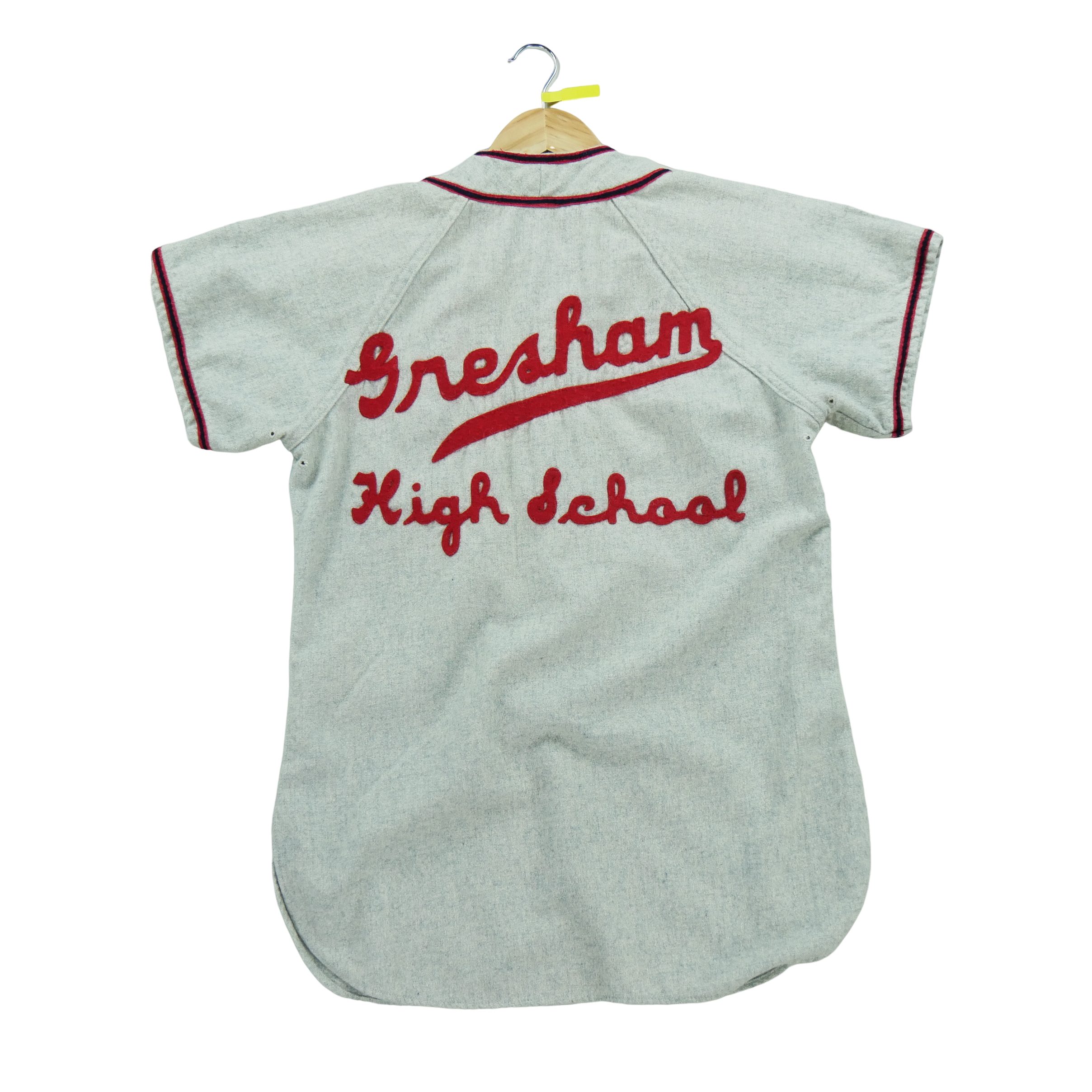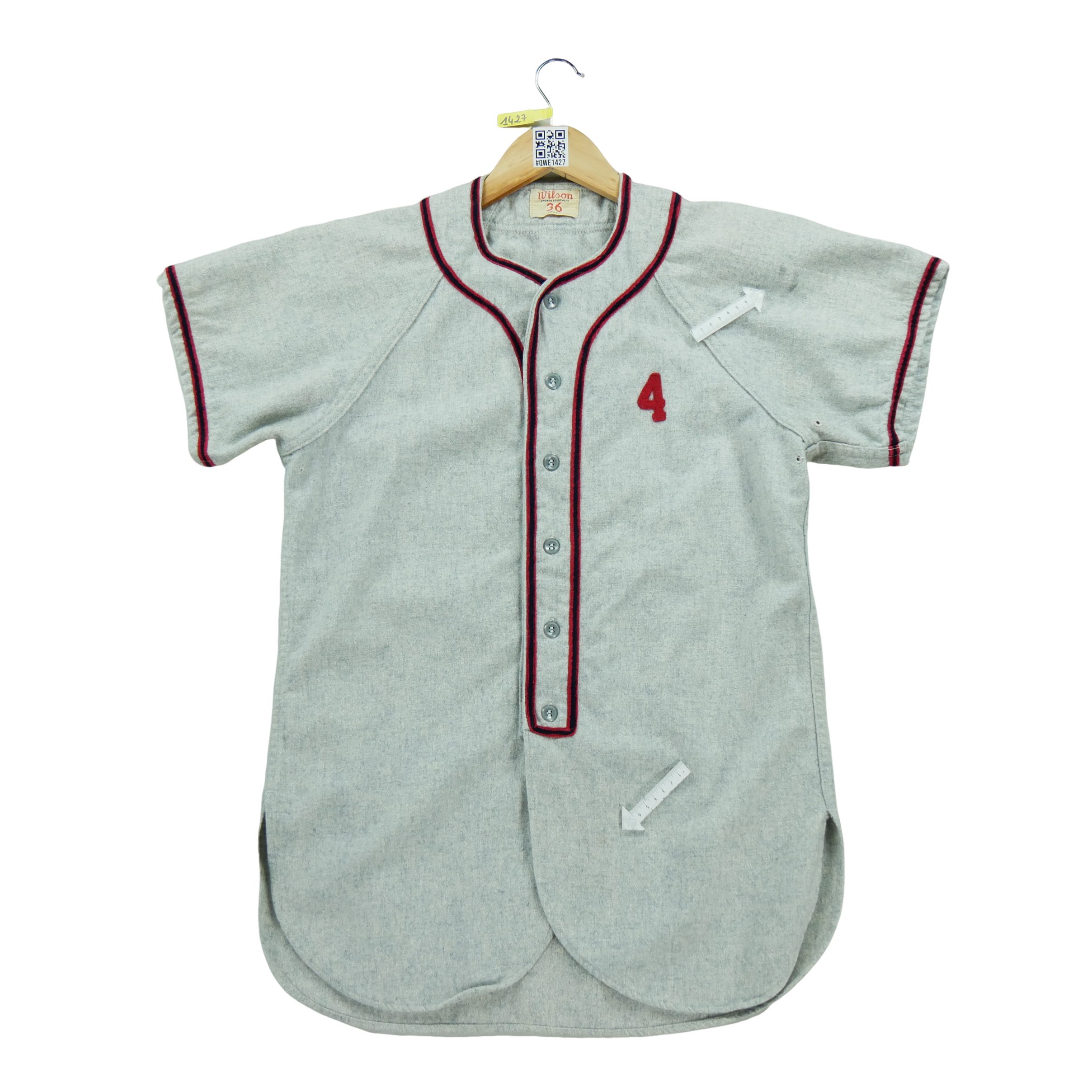 Nos vêtements reconditionnés ont été vérifiés par nos experts puis nettoyés afin d’être portés de nouveau. Ce maillot vintage femme Wilson des années 50-60 est idéal pour le baseball. Taille S, couleur gris. En bon état. Profitez de son style rétro pour vos matchs.