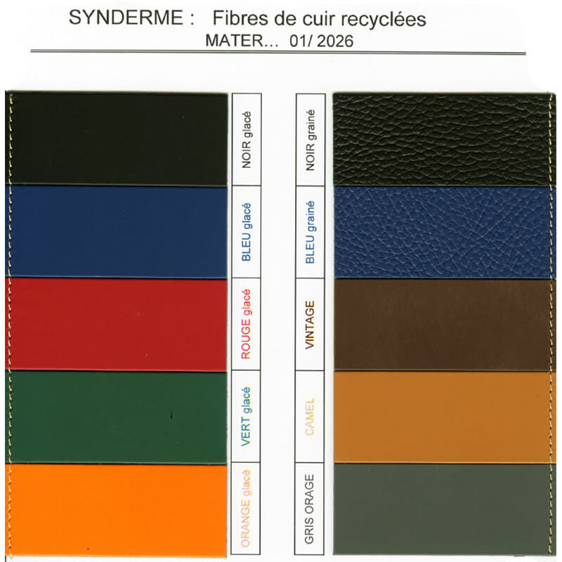 Choisissez la couleur du synderme (cuir recyclé) parmi différents coloris et textures.