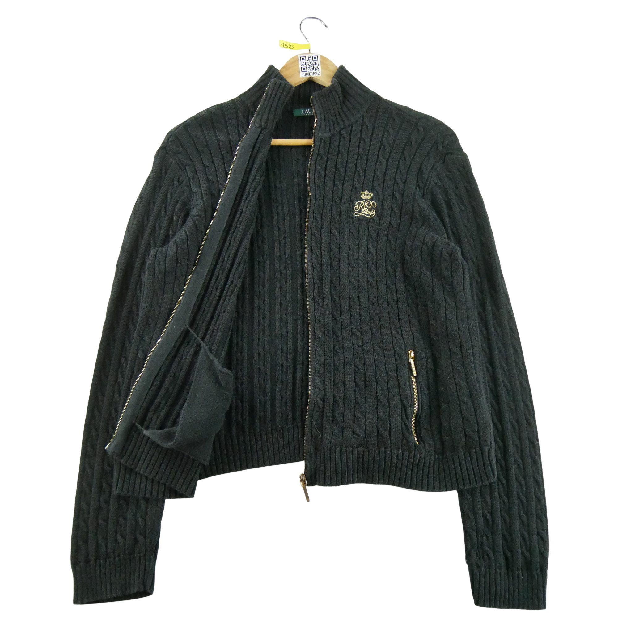 Nos vêtements reconditionnés ont été vérifiés par nos experts puis nettoyés afin d’être portés de nouveau. Ce cardigan noir pour femme de la marque Lauren Ralph Lauren en taille XL est un vêtement d’occasion en bon état. Idéal pour un look élégant et confortable au quotidien.