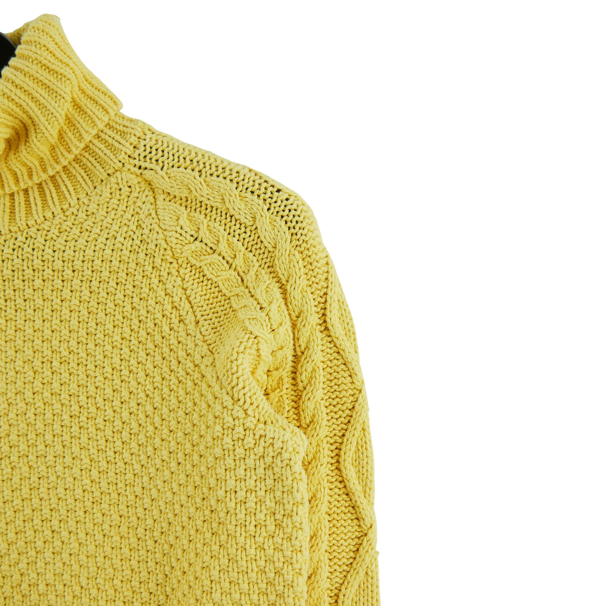 Le col roulé jaune de ce pull apporte une touche de couleur et d’originalité à votre tenue, idéale pour affirmer votre style avec audace.