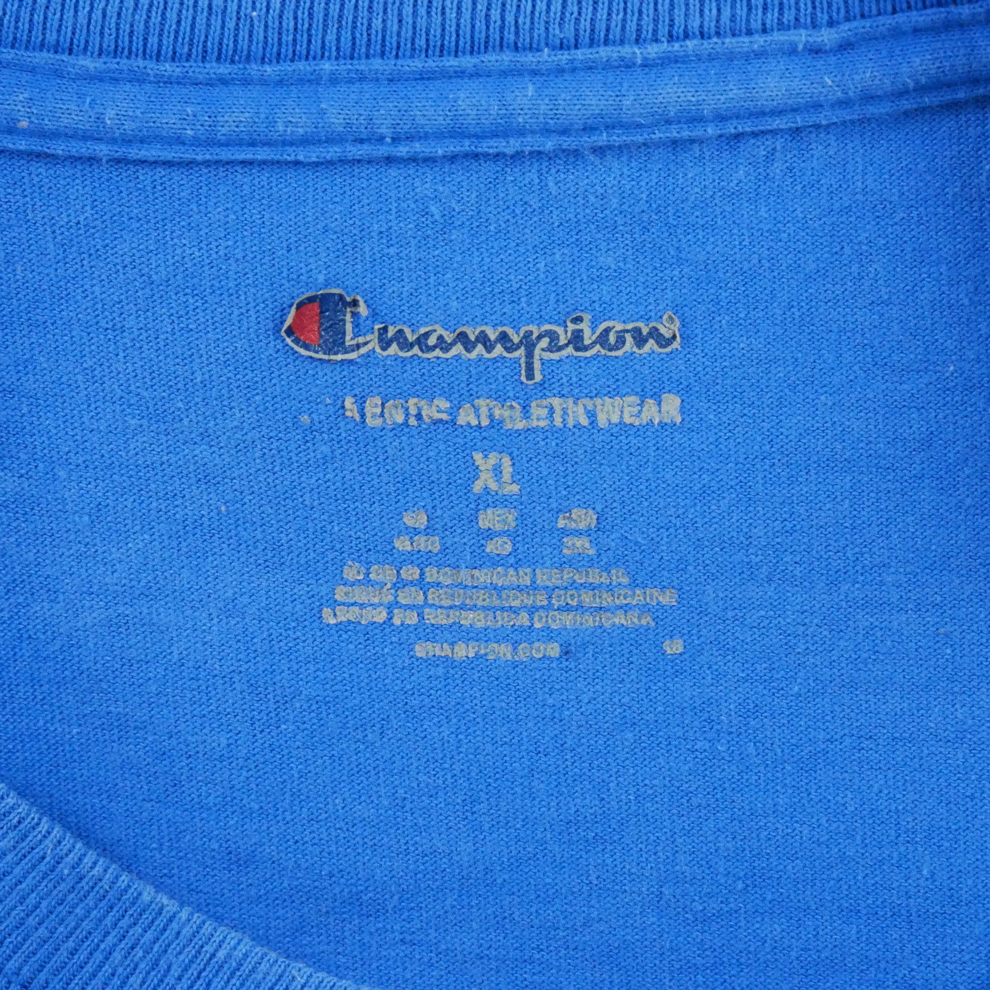 Nos vêtements reconditionnés ont été vérifiés par nos experts puis nettoyés afin d’être portés de nouveau. Ce T-shirt manches courtes Champion en taille XL est parfait pour le cardio training. De couleur bleue, il est en très bon état.