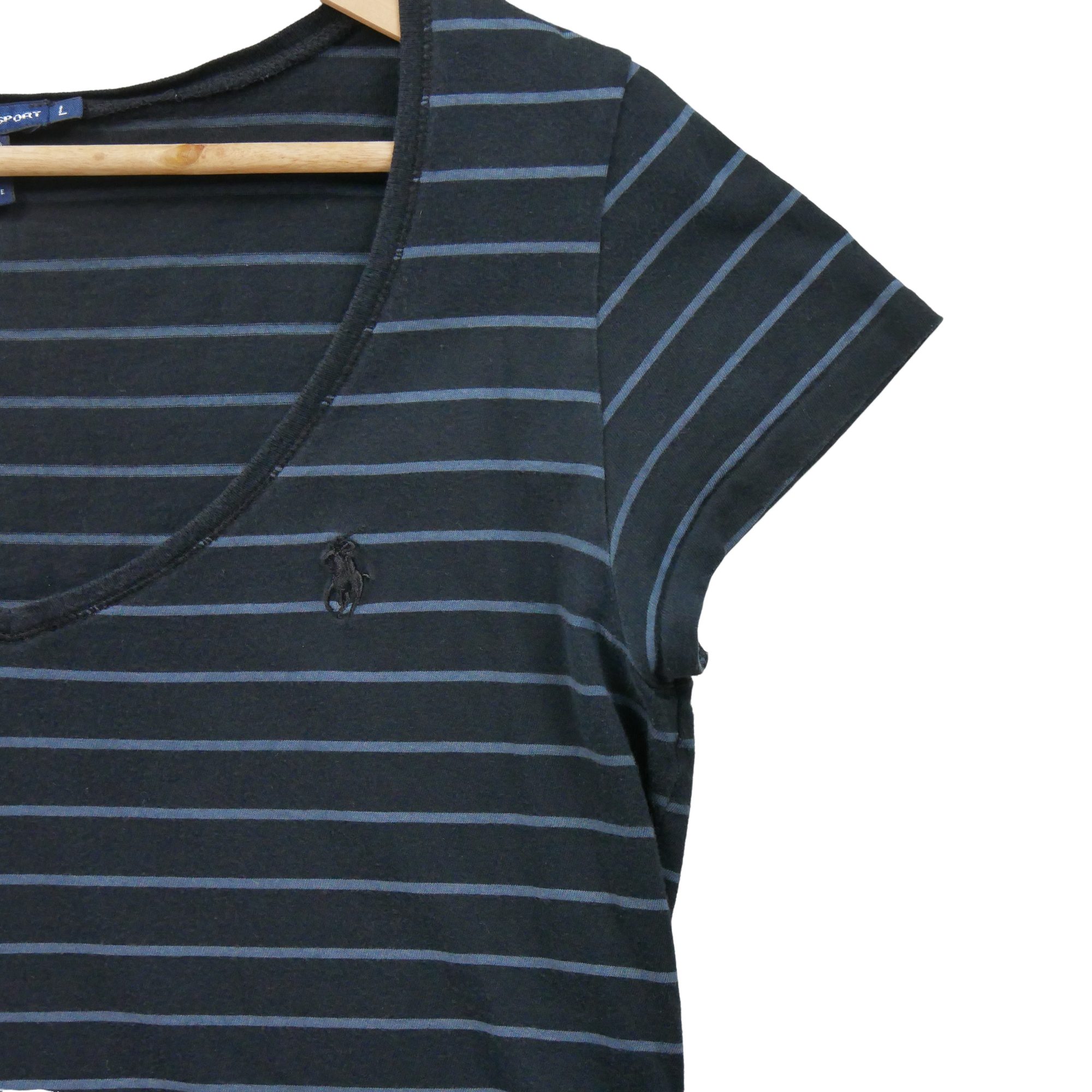 Nos vêtements reconditionnés ont été vérifiés par nos experts puis nettoyés afin d’être portés de nouveau. Ce T-shirt manches courtes femme Polo Ralph Lauren en taille L est en très bon état. Un classique de la mode à adopter sans hésiter.