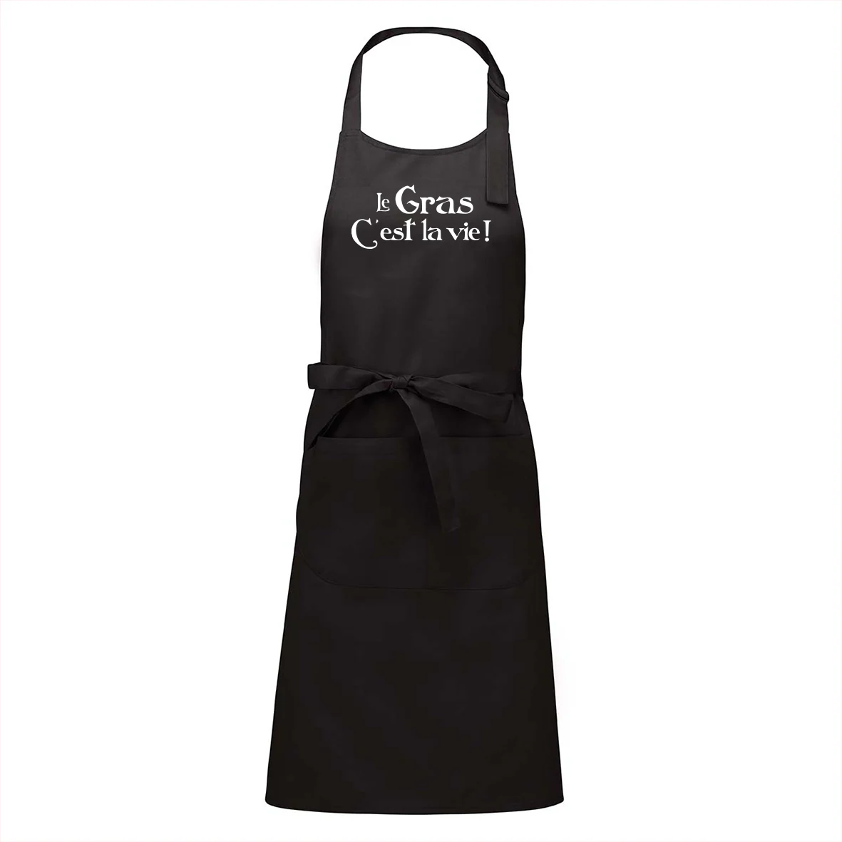 Tablier en toile épaisse « LE GRAS C’EST LA VIE » lavable à 60 °, avec poches.